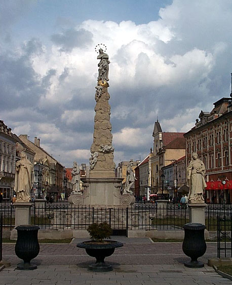 Súsošie stojí na mieste niekdajšieho popraviska, postavené na pamiatku vojen a moru v rokoch 1720 - 1723. Pomník bol reštaurovaný v roku 1908, doplnený kópiami pôvodných sôch sv. Michala, Margity, Alžbety a archanjela Gabriela. Počas II. svetovej vojny bol pomník poškodený a v roku 1954 reštaurovaný Vojtechom Lőfflerom a D. Gavorom. V roku 1996 začala dpopsiaľ posledná rekonštrukcia vo firme ESO, Chvacho a Kolník v spolupráci s historikom umenia Gabrielom Kladekom.